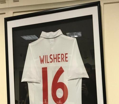 出自卢顿青训,卢顿主场挂着威尔希尔完成英格兰队首秀的球衣