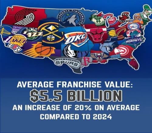 NBA球队最新估值:勇士113.3亿连续5年领跑火箭第10开拓者第24