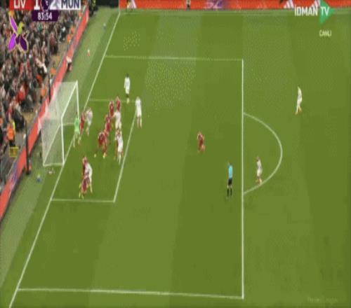 第50分钟,萨拉赫传中,加克波禁区左侧停球,右脚爆射击中立柱弹出!