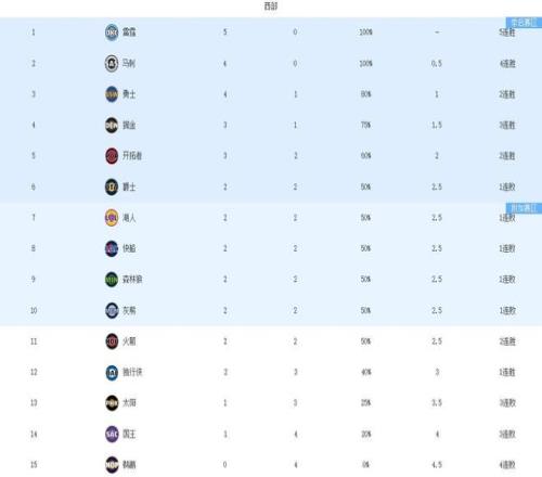 这个比赛日,NBA西部最新排名出炉: