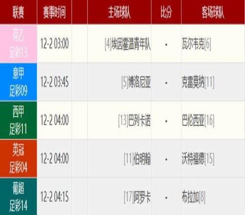 其他赛事比分: